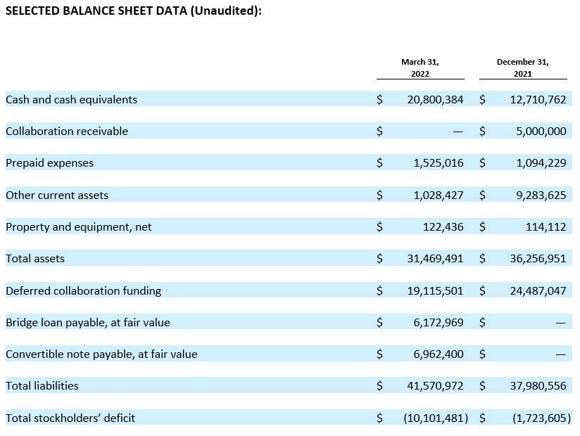 - In March 2022, announced convertible note and loan financing facilities for up to $48.5 million with affiliates of Marathon Asset Management L.P. (Marathon) and SWK Holdings Corporation, subject to certain conditions. Proceeds from these financings will be used to advance pipeline and for general corporate purposes. Further information with respect to the debt financing agreements with Marathon and SWK is contained in a Current Report on Form 8-K filed with the Securities and Exchange Commission on March 7, 2022